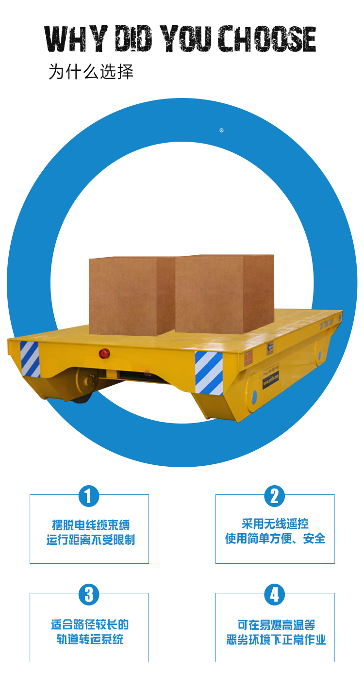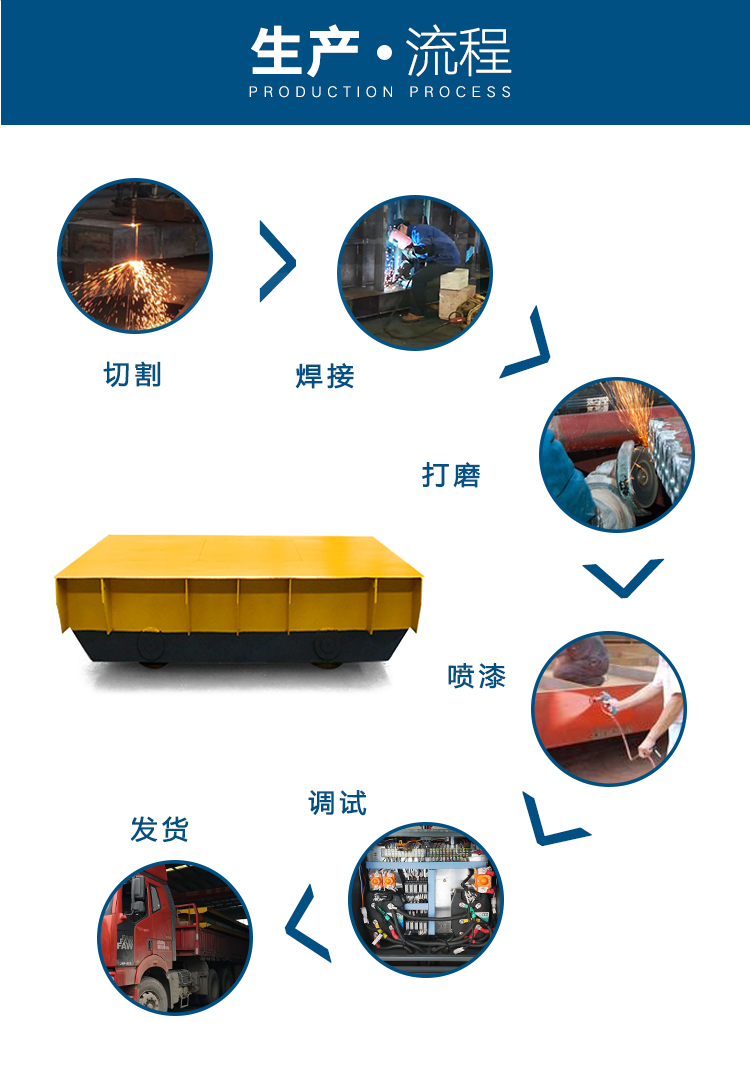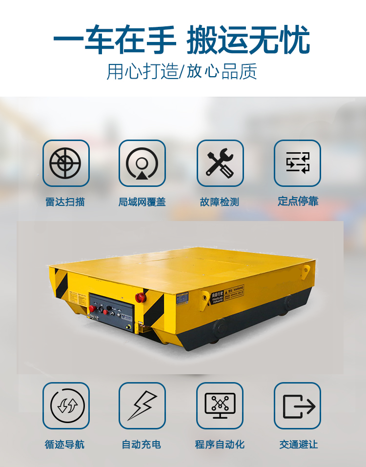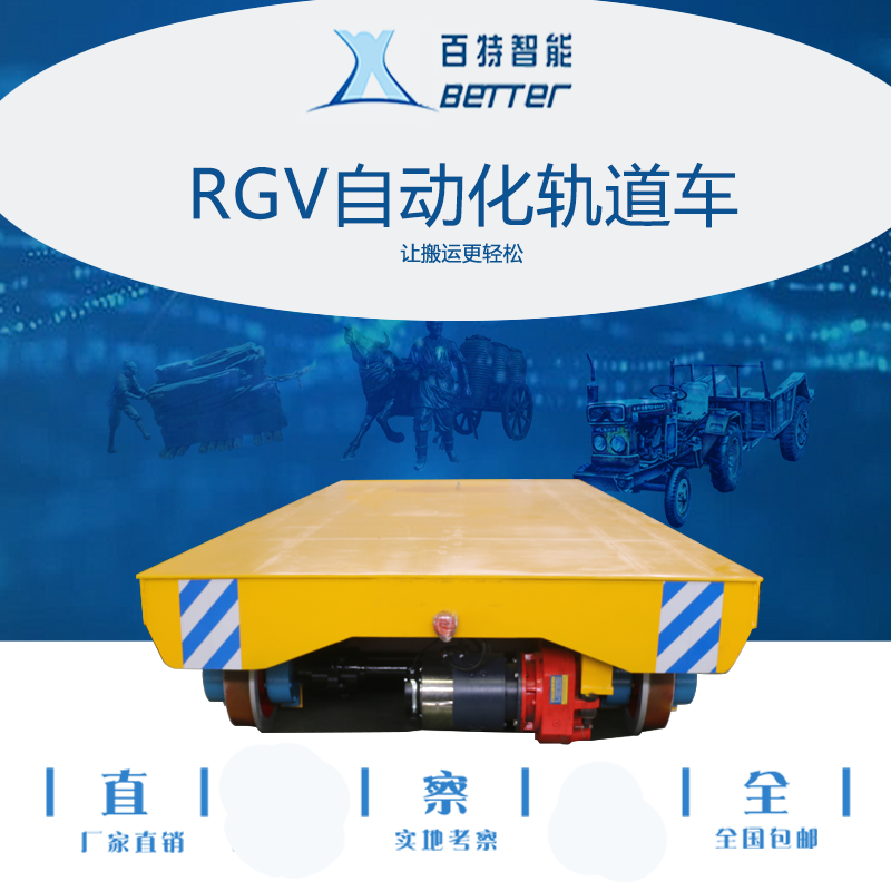 RGV軌道車主要由車身、導軌、傳動系統和控制系統等部分組成。車身是RGV軌道車的主體,由鋼材制成,具有足夠的強度和剛性。導軌是固定在地面上的金屬軌道,用于引導RGV軌道車行駛的方向。傳動系統由電機、減速機和鏈條組成,通過電機驅動鏈條運轉,從而帶動RGV軌道車的運動。控制系統則是整個RGV軌道車的大腦,負責接收指令、處理信息,并控制軌道車的運行。