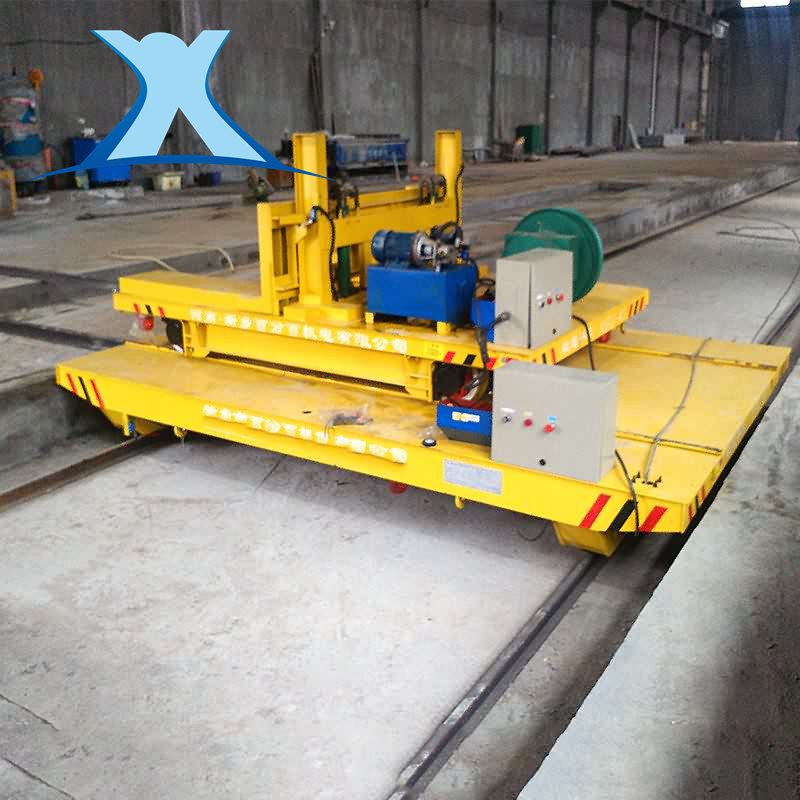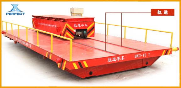 擺渡平車一般用于兩條或多條平行軌道之間的換軌,由上下兩層軌道平車疊加組成,地溝中行駛,臺面與地面平齊,且大車臺面上安裝有軌道,整車運行路線呈前后布置,大車橫向快速移動后能夠準確的停止、定位和接軌,小車在大車臺面軌道上呈縱向路線運行,實現(xiàn)小車換軌換位功能。擺渡式軌道平車不僅僅只是兩層,還可根據(jù)情況設(shè)計為三層或多層。
