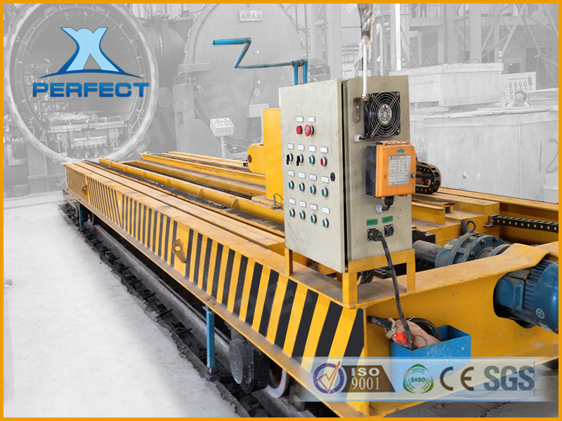 適用于淬火爐、真空爐等工作環境。是專門為制作真空設備的生產商專業研發的一款新型軌道運輸車產品,可實現單層、雙層及三層的不同運行的功能。此類軌道平車載重噸位通常不大,主要的作用是將需要加工的工件送入爐內,留在爐內待加工完成后拉出爐體,此車共有三層部分組成,一層車主要是在地面軌道運行,運行距離不受束縛,將二、三層車送至爐體旁邊,一層車的供電方式多樣化,可根據現場的條件及環境設定,到達爐體后二層車需要向前推送至爐體內,和爐體內的軌道對接,二層車的驅動方式一般采取較為準確的方式向前推進,這一段行進的距離通常在1
